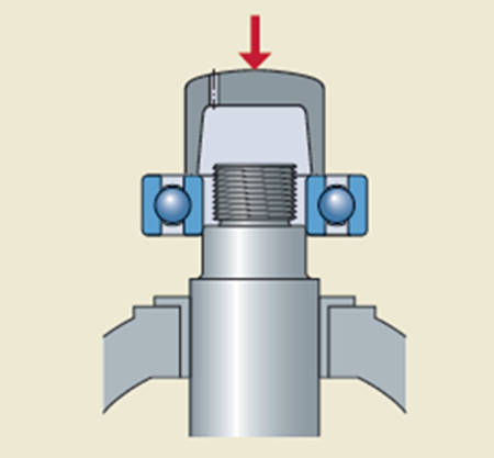 正常安裝軸承時(shí),如果內(nèi)圈是配合面,那么就會(huì)壓內(nèi)圈,外圈不受力,也就不會(huì)產(chǎn)生傷痕,如下圖。