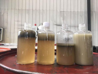 由于使用過程中處理不當(dāng),客戶送過來的油品經(jīng)過取樣后,發(fā)現(xiàn)一些桶中含水分比較多,一些桶中乳化已經(jīng)比較嚴(yán)重。