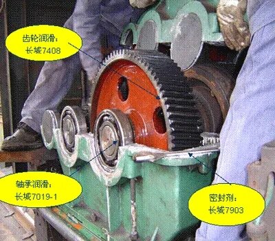 1、舊減速機清洗干凈后即可加入長城7408半流體齒輪潤滑脂;新減速機需要齒輪油進行24小時跑合,然后將全部油放掉并清洗干凈,最后加入7408半流體潤滑脂。加入半流體潤滑脂的量達中間軸傳動齒輪的齒根處即可。